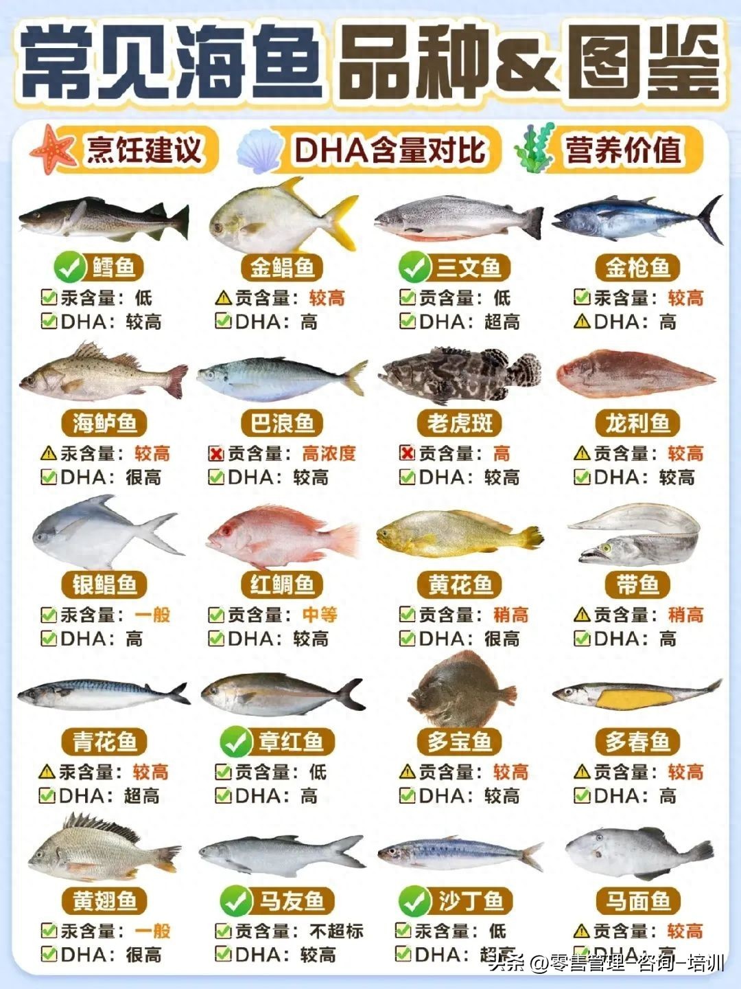 常见的20种海鱼图鉴,营养价值图鉴,食用指南