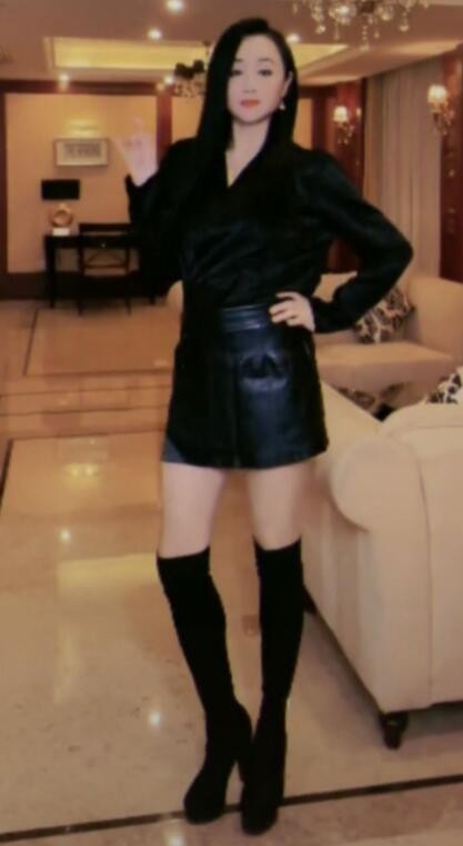 4月19日,46岁曹颖在社交平台晒出近况,她穿着黑色V领上衣和黑色短款皮裙,搭配高筒靴子,一头中长发显得她整个人非常的飒爽,身材很是纤细,一双大长腿很是吸睛。