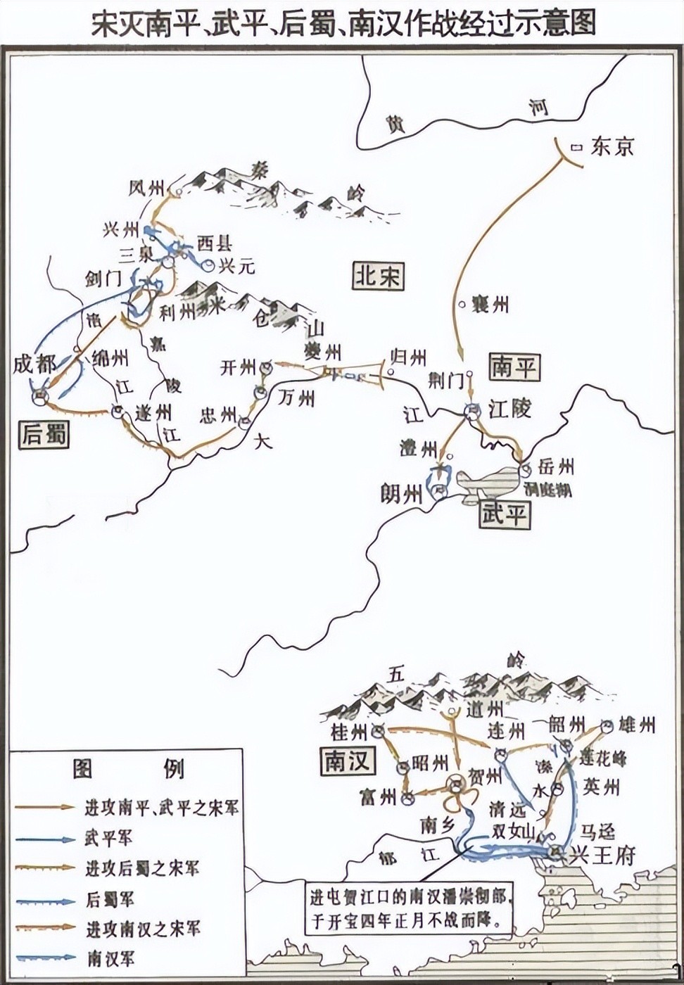 统一全国:宋太祖即位后,积极进行军事征伐,逐步统一全国。他先后平定了南方的南唐、后蜀、南汉、南平、吴越等割据势力,结束了五代十国的分裂局面,实现了中原地区的统一。