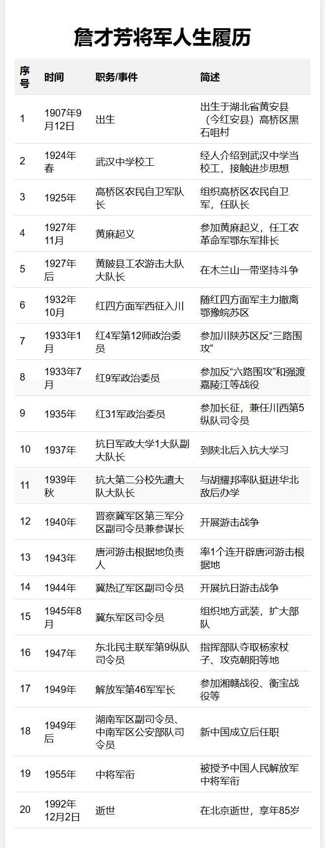 湖北红安是个英雄辈出的地方,这里走出了不少将军,詹才芳就是其中之一。他从一个穷苦孩子成长为开国中将,这一路走来,满是传奇。