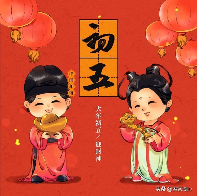 接财神:正月初五上炷香,一年四季财源广;正月初五摸元宝,大钱小钱用不了;正月初五请财神,家家户户财源滚;正月初五神进门,五谷丰登福满门。”