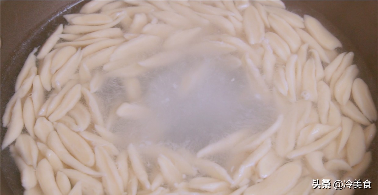7:然后在锅中烧水,水开后依次下入我们做好的面鱼,盖上盖子,用大火煮5分钟左右,一直煮至全部浮起后就可以出锅啦。