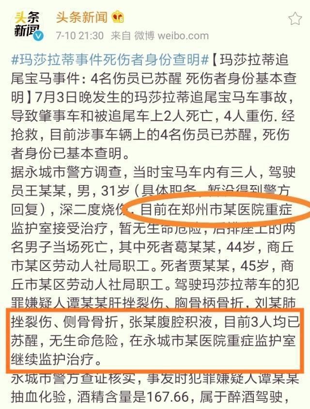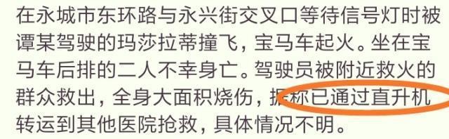 玛莎拉蒂肇事案,谭明明已苏醒,宝马车主直升机转院郑州!