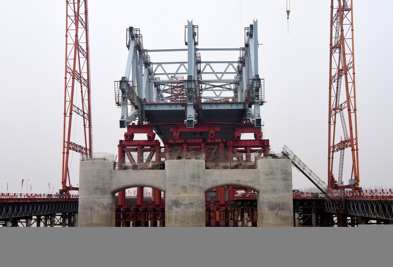 近日,国家重点工程——郑(州)济(南)高速铁路郑州黄河特大桥建设工程有序复工。由中铁大桥局承建的郑济高速铁路郑州黄河特大桥主桥及南引桥全长4377米,采用公路、铁路上下层合建的布置形式,设计4线铁路、6车道快速公路。新华社记者朱祥摄