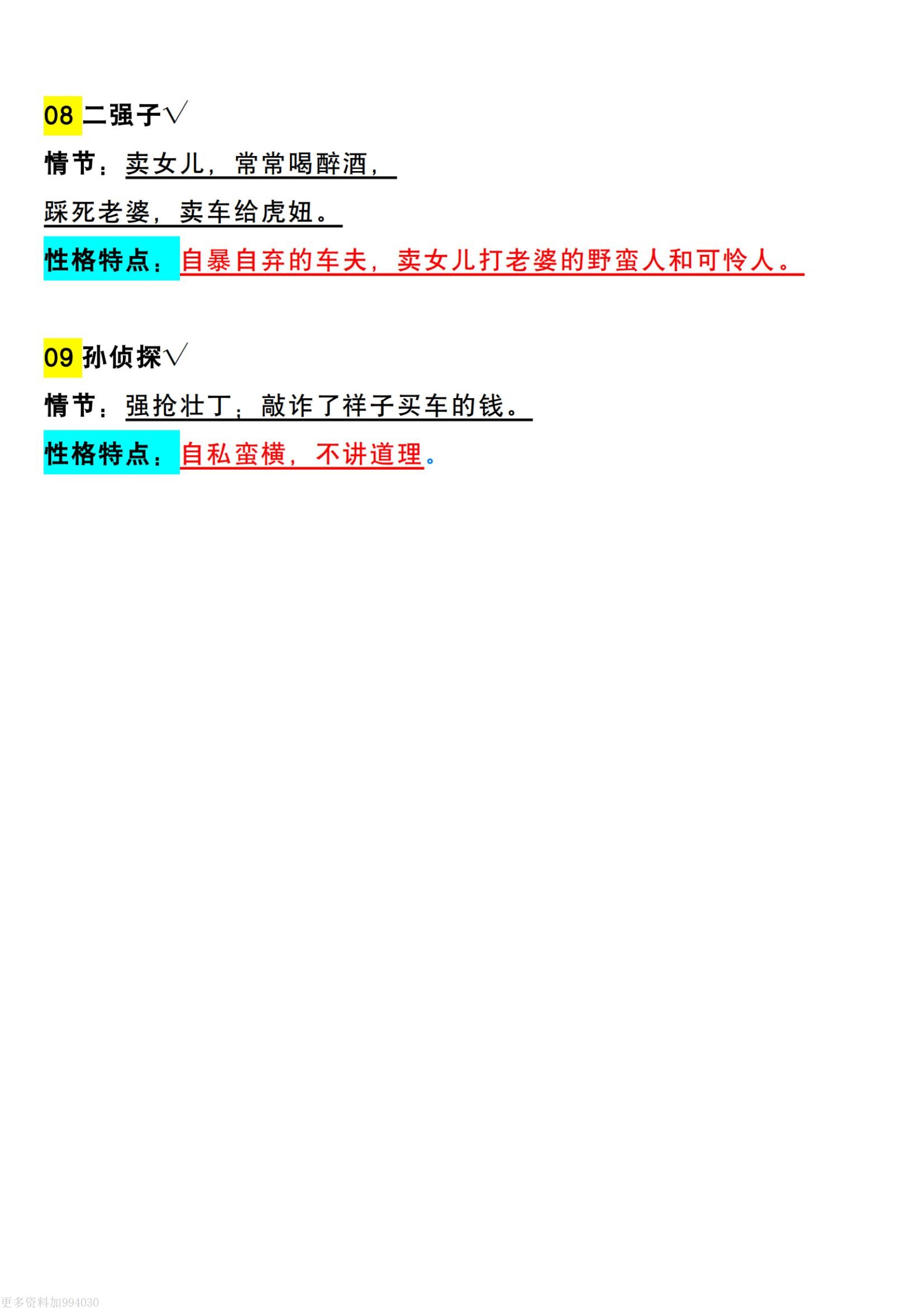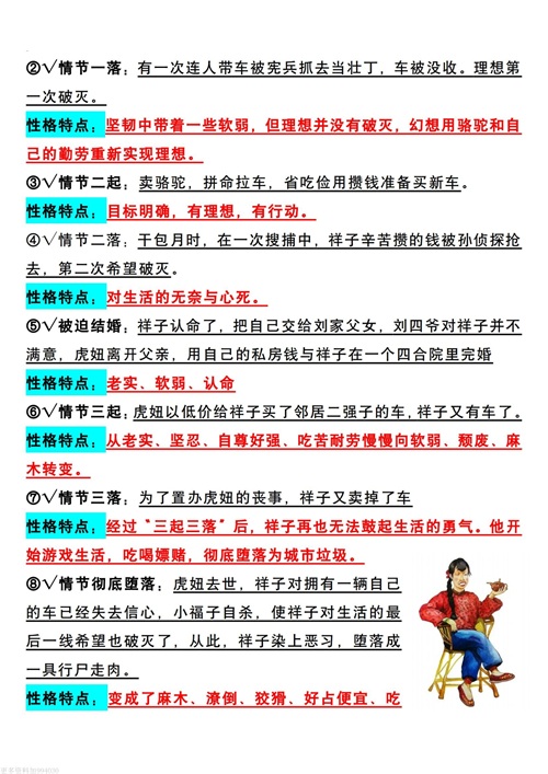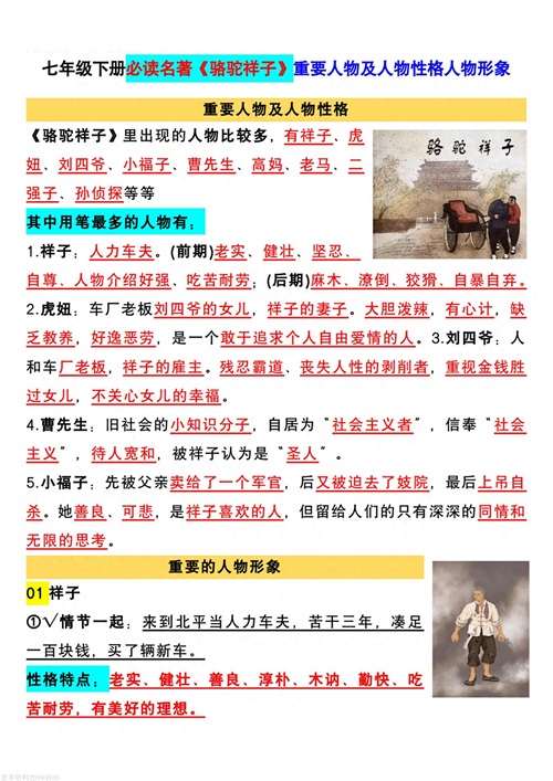 七(下)语文必读名著《骆驼祥子》重要人物及人物性格人物形象
