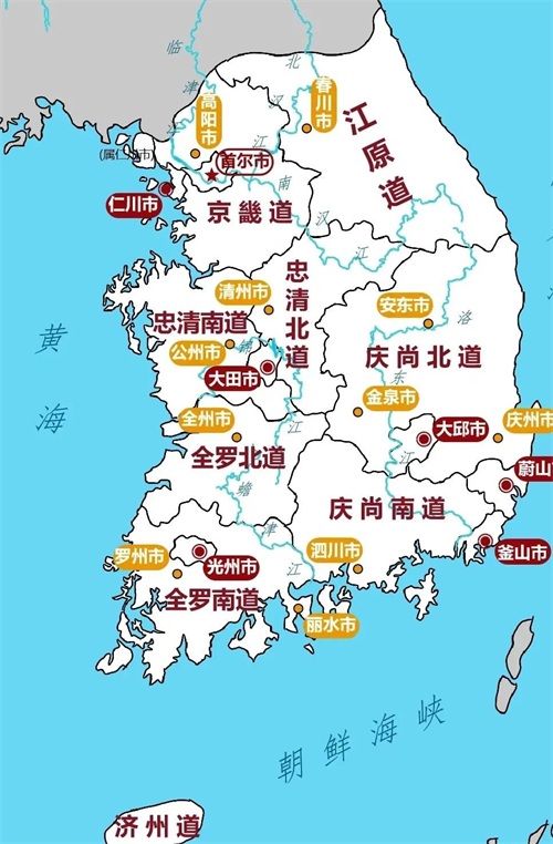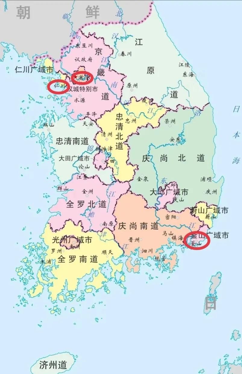 韩国地图犹如“困笼之猪”,三大城市位置也非常尴尬
