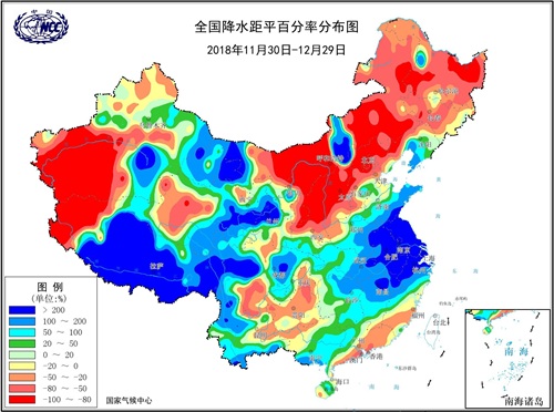 事实上,北京市区尴尬的“缺雪”现状是我国北方地区今冬天气的一个缩影,中国气象局国家气候中心公布的数据来看,在过去一个月里我国北方大部降水偏少,而江淮、长江中下游地区和西南降水偏多,这正说明了我国水汽活动并不太均衡,也是造成北京“缺雪”的重要原因。