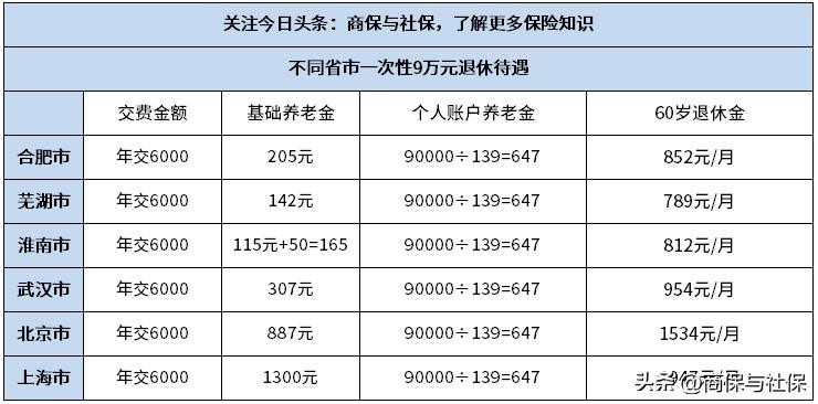 2、算一算不同省市2023年一次性9万元退休待遇: