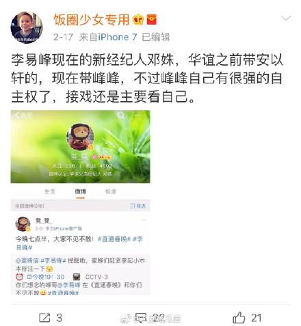 2月28日,有博主爆料称,李易峰近期确定了新的经纪人邓姝,邓姝的个人微博简介也已变成李易峰经纪人,微博内容也都是李易峰相关。据悉,邓姝之前在华谊兄弟主要负责安以轩的相关业务,相信此次更换经纪人之后,李易峰在事业上会有更大的进步。