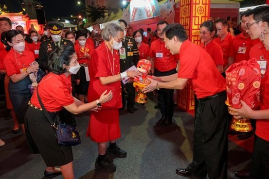 人民网曼谷2月1日电 (记者简承渊)1月29日农历大年初一傍晚,曼谷耀华力路唐人街洋溢着浓浓的“年味儿”,成排的红灯笼当街高高挂起,中泰建交50周年标识随处可见,2025年泰国“欢乐春节”开幕盛典在这里隆重举行。泰国公主诗琳通莅临现场并主持开幕仪式,泰国总理佩通坦、旅游与体育部长索拉翁、文化部长素达婉、曼谷市长查察,中国驻泰国大使韩志强及夫人等数十位中泰各界嘉宾齐聚一堂。
