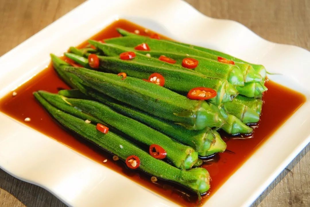 3.秋葵去蒂,摆盘,将汤汁倒入,搅拌均匀,即可食用。