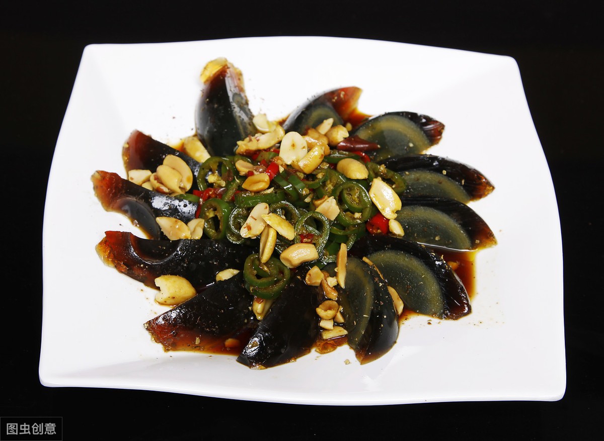 材料:皮蛋、生抽、香醋、葱、蒜、花生碎、辣椒、油、辣椒油、盐