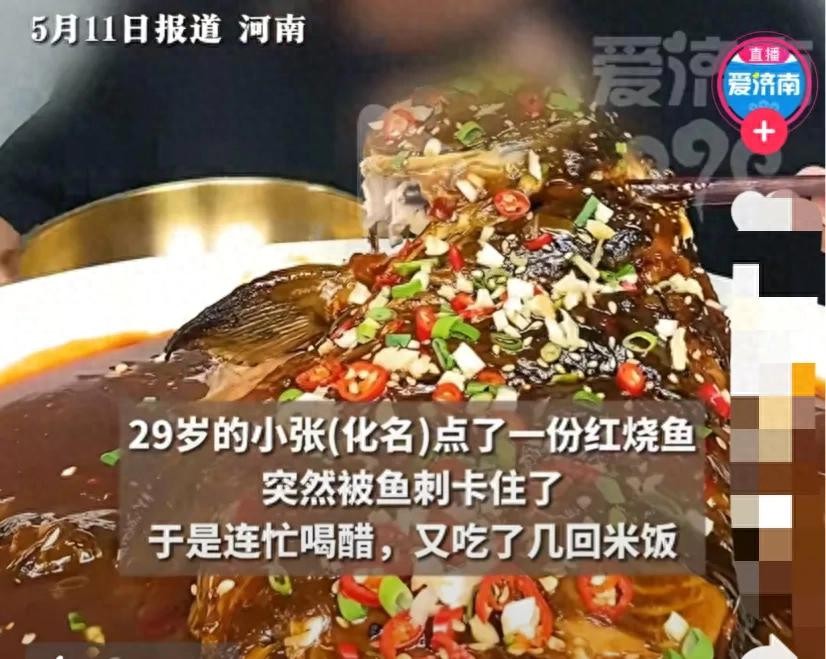 5月11日,河南一29岁小伙(化名小张),在晚饭期间点了一条红烧鱼,他本身是一个吃鱼爱好者,有一定的吃鱼经验,就在他吃的正欢的时候,突然被鱼刺卡住!