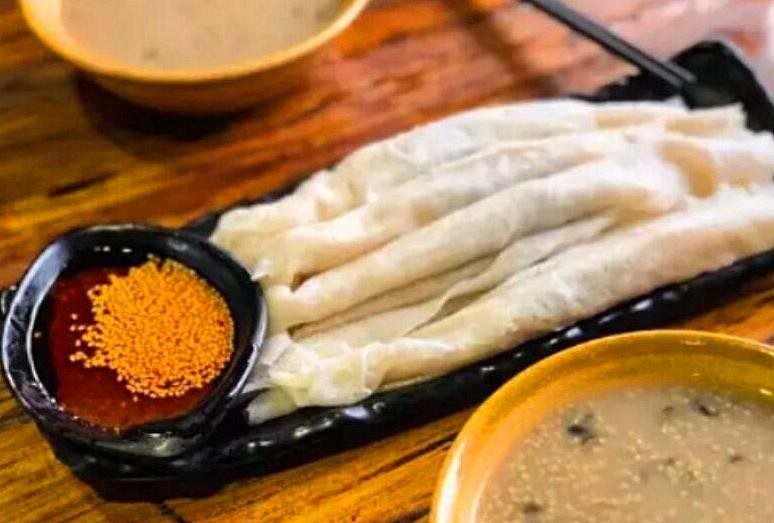 子长煎饼就是用荞麦面做的煎饼,在延安人眼里这是百吃不厌的美食,子长煎饼看着是透明的,晶莹剔透,形状呈椭圆状,吃到嘴里柔软筋道,如果再搭配卤肉和凉菜,炒菜等味道更佳,特制的秘制酱料也是酸辣开胃,特别是天气炎热的时候,老少皆宜,如今已经成为延安的十大名小吃。外地人尝过之后,却直摇头,感觉好像有点消化不了。