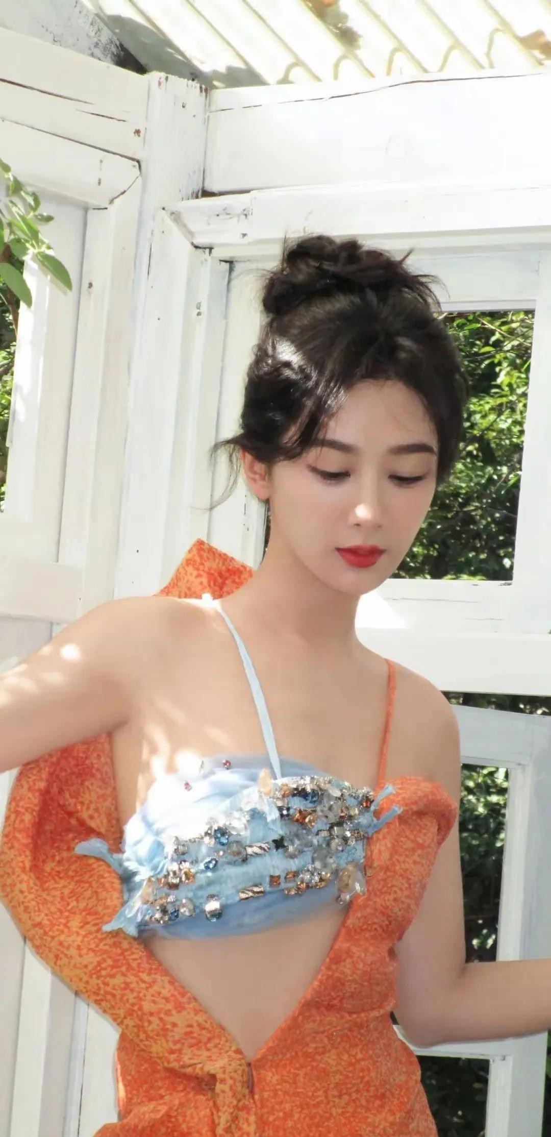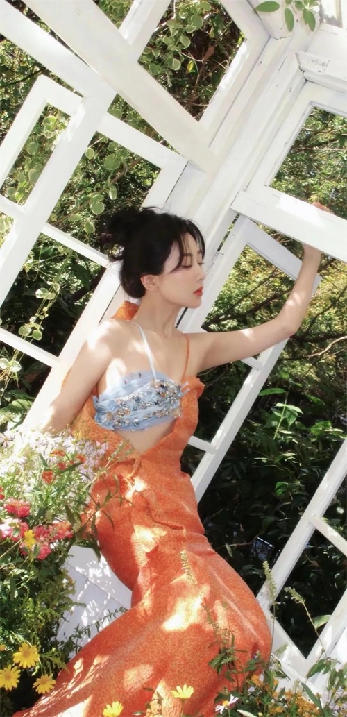 尤其她身着一件设计独特的橙色长裙,裙摆随风轻轻飘扬,展现出她优雅而自信的一面。背景是一个充满生机的花园,五彩缤纷的花朵与她的装扮相得益彰,她仿佛是从花园中走出的精灵,既灵动又充满生机。杨紫的这种自然美和时尚感,无疑使她成为了当代女性的典范,激励着更多人追求自我,展现个性。