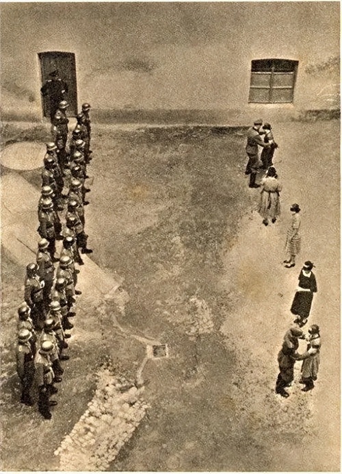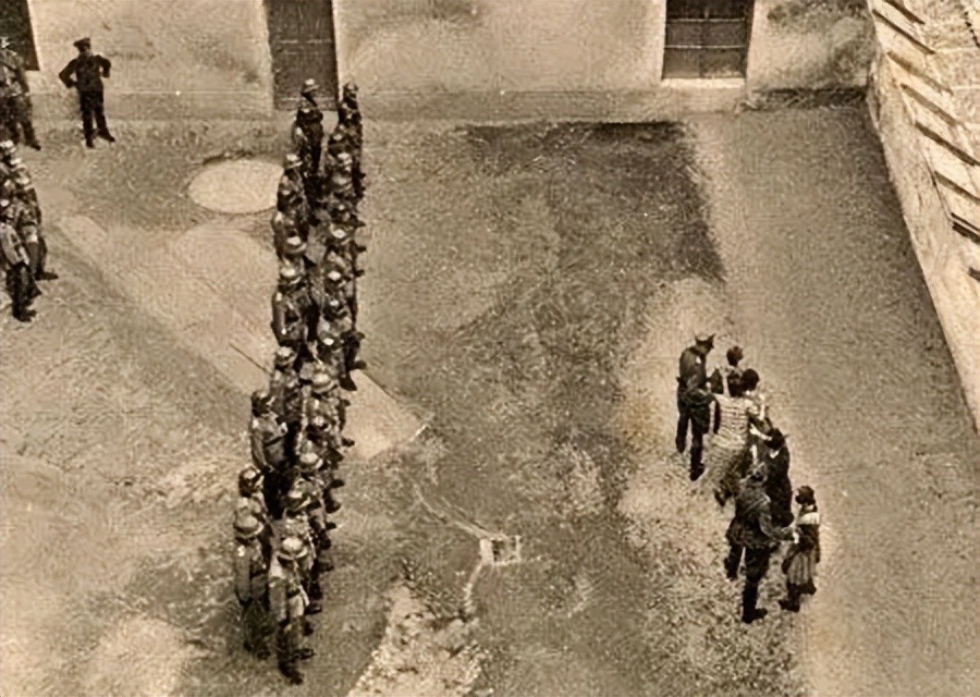 纳粹军官在引导这些妇女站好。