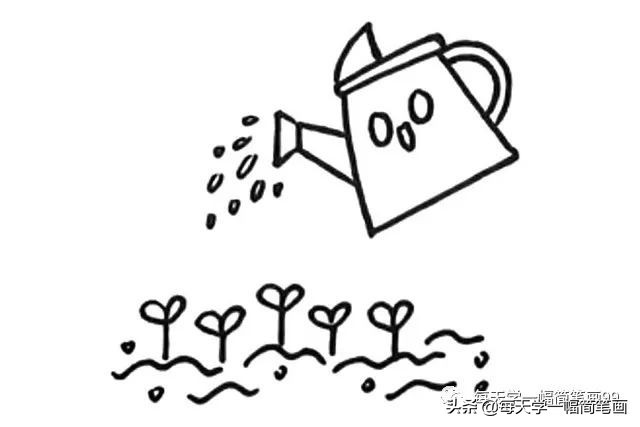每天学一幅简笔画--给土地里的树苗浇水简笔画教程