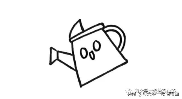1.先画一个倾斜的梯形,是水壶的身体部分。