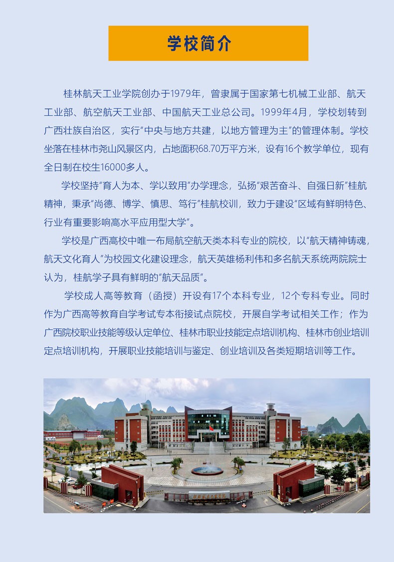 航空航天类专业承担着我国航空航天事业和国防工业的重要使命,但是国内目前航空航天类院校较少,有985的北京航空航天大学和西北工业大学,211的南京航空航天大学等。但是,你敢相信二本中档考生也能上航空航天院校?今天小编给大家带来的院校就是这样一所院校:桂林航天工业学院,曾隶属于航天工业部,现在为国家航天工业总公司和广西壮族自治区省部共建高校。学校设有飞行器制造、飞行器动力、飞行器质量、通信、电子等相关专业,每年都有大量毕业生进入航空航天系统工作,就业前景较好。