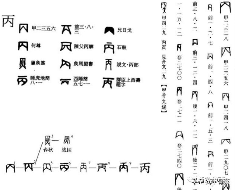 通过系统的研究,我的结论是,这种直角三角形符号,是源自一对书契,其完整的状态是甲骨文丙字。