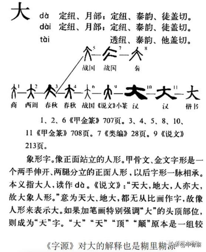 甲骨文大的原始含义是人的德性之大,是大人之大,也可指大人。