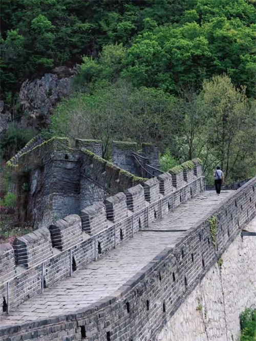 一下碰撞到一起,融合得那叫一个完美。沿着那弯弯曲曲、起起伏伏的城墙一步一步往上爬,走几步就能碰上一个烽火台,站在上头,视野一下子开阔得不行,周边的壮丽山河“哗啦”一下全涌