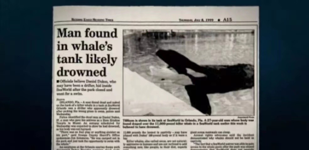 在布兰切被杀的第二天,报纸的头条就登出了海洋馆虎鲸杀人的事件。