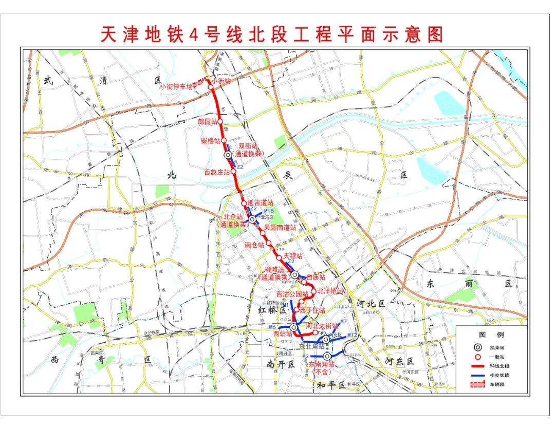 4号线北段工程北起北辰区小街站,计划2025年下半年实现4号线(小街站至西站站)通车。