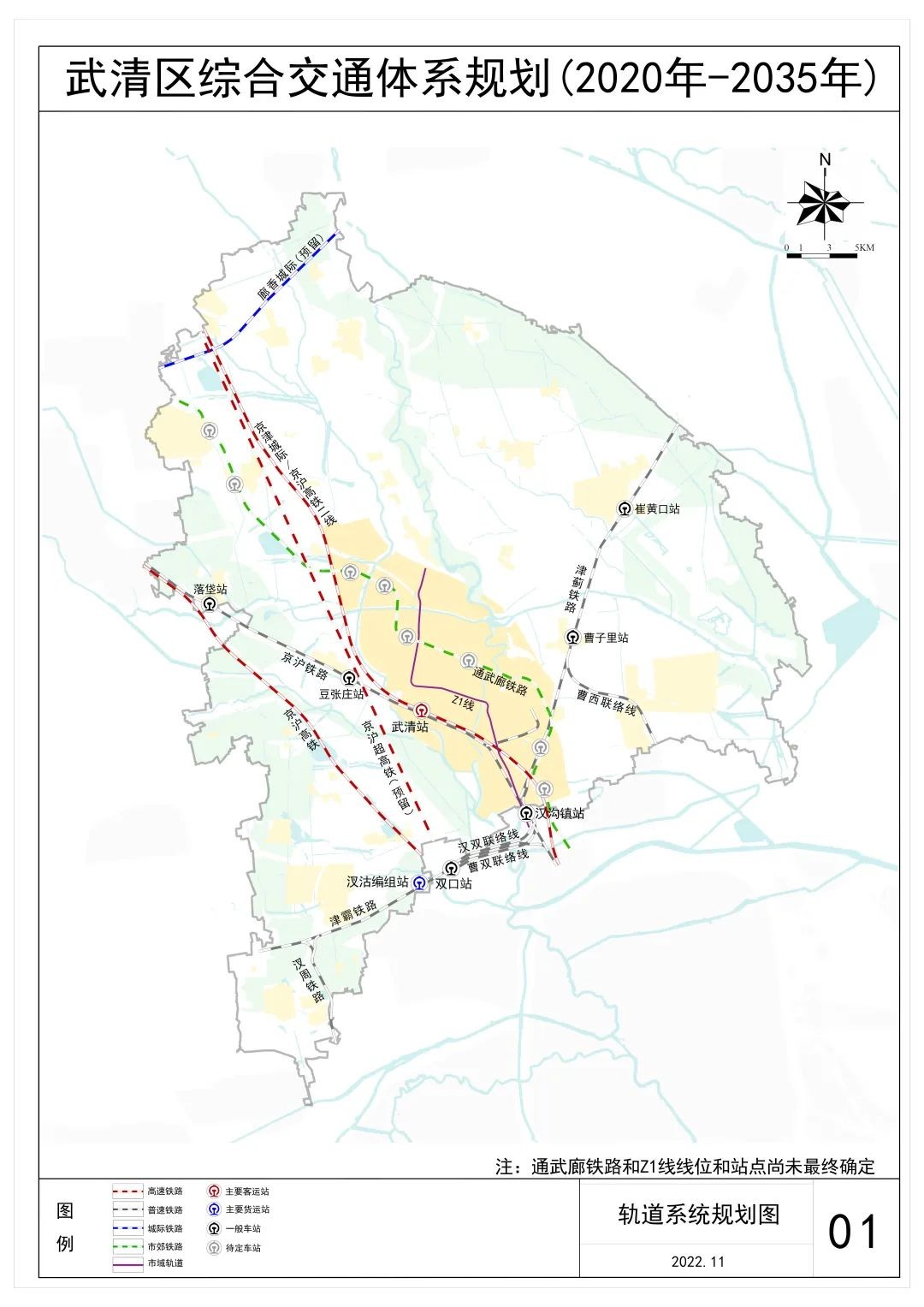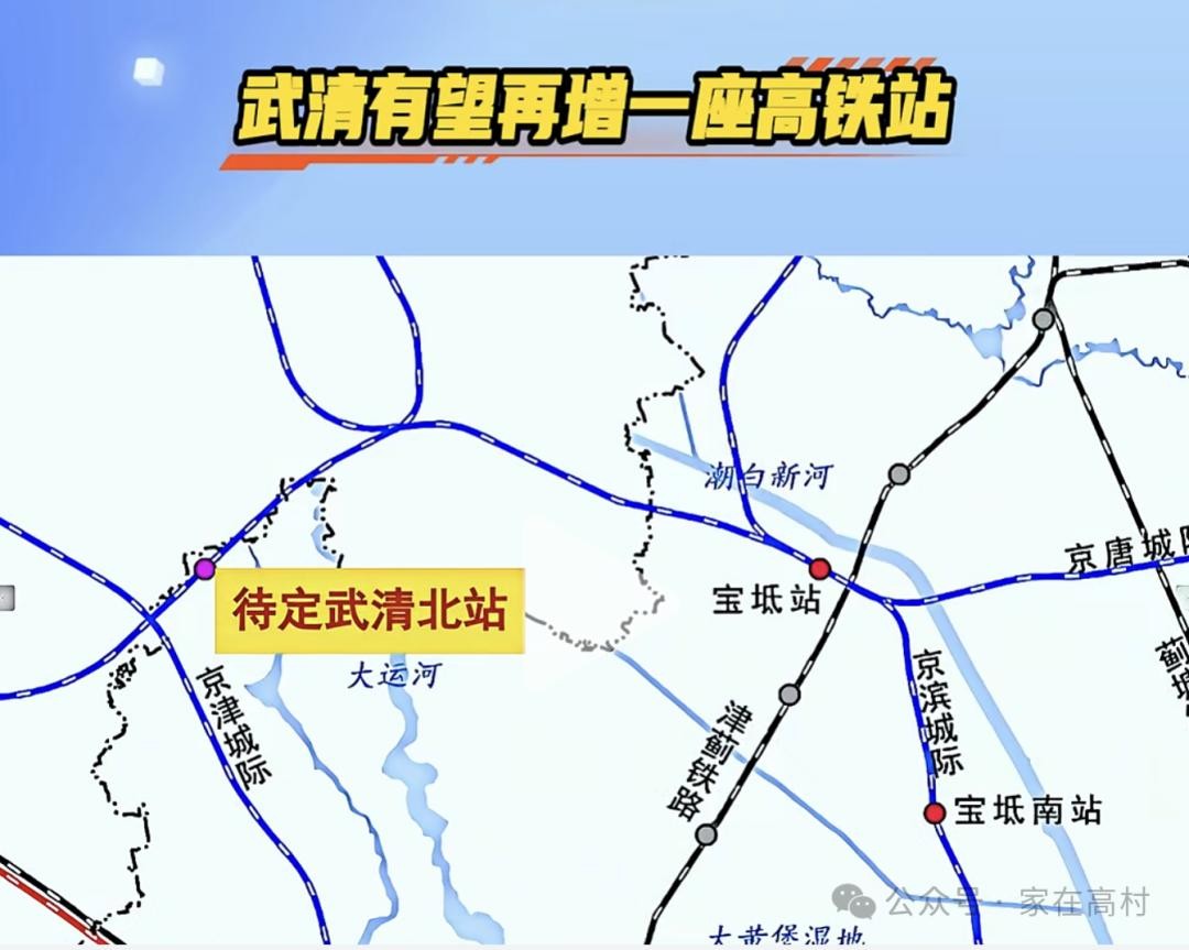2024年9月27日,天津市人民政府发布“关于印发天津市国土空间总体规划(2021—2035年)的通知”。总体规划中的铁路系统规划图显示,天津市武清区有一座待定的城际铁路车站。