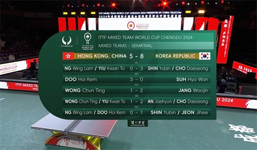 乒乓球混团世界杯:韩国队8-5战胜中国香港晋级决赛,与国乒争冠