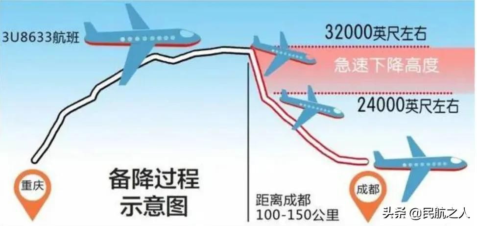 (此时在飞机上,风挡玻璃爆裂、自动驾驶失灵、机组成员受伤、对外通讯中断、强风强压、低氧低温;在飞机下方,是横断山脉青藏高原山区,地形复杂危险,备降机场成都距离飞机约150公里.)