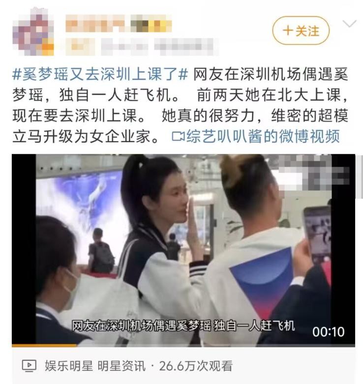 没过几日,又有网友偶然碰见她独自一人搭乘飞机前往深圳上课。