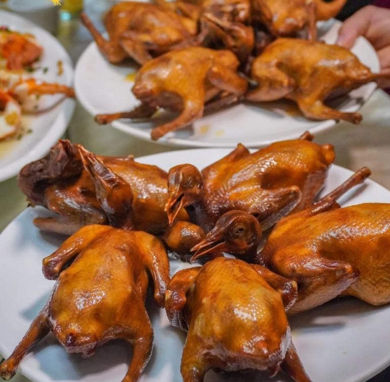 先说光明乳鸽。这光明乳鸽可是深圳特别有名的传统名菜,皮脆、肉嫩、骨头香,还鲜美多汁。选乳鸽的时候可讲究啦,得挑生长期合适、个头也适中的,这样才能保证肉嫩。做菜的时候,经过好多道工序仔细弄,乳鸽的皮被炸得金黄酥脆,肉还是原来那么鲜嫩多汁。