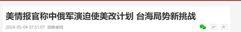 3.美情报官称中俄军演迫使美改计划 台海局势新挑战 2024-05-04 观察者网 中华网