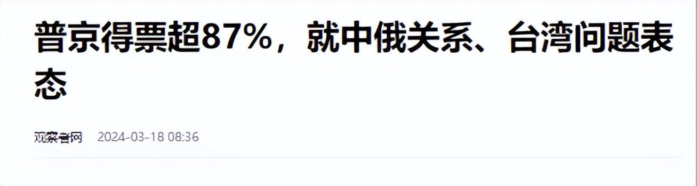6.普京得票超87%,就中俄关系、台湾问题表态 观察者网