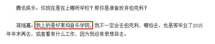 蒋瑶嘉,又名蒋一侨、蒋瑶佳。资料显示,生于1994年、浙江省湖州市,她高中就读于杭州外国语学校剑桥国际高中 ,高中毕业后,她先后被好莱坞音乐学院、伯克利音乐学院录取。