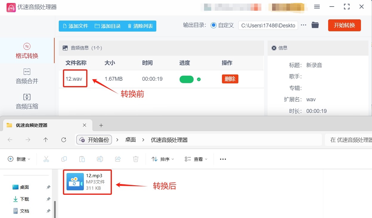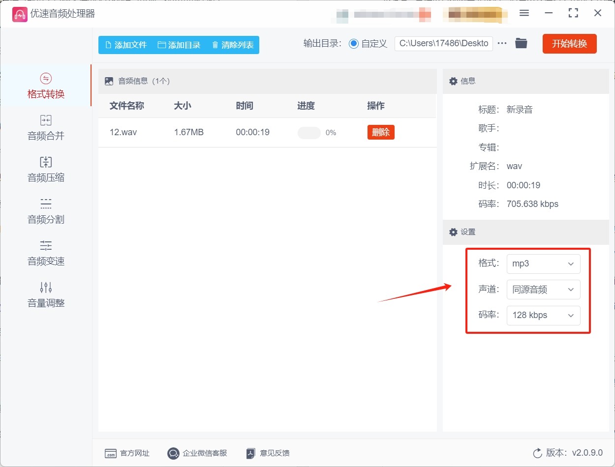 方法一:使用“优速音频处理器”将wav转换成MP3