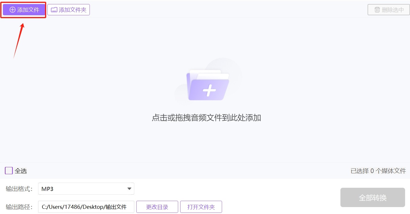 如果您希望将转换后的MP3文件保存到特定的文件夹中,可以点击软件界面中的“...”按钮来选择输出文件夹。