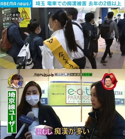 车站、车厢随处可见“小心痴汉”、“痴汉行为是犯罪”的标语;