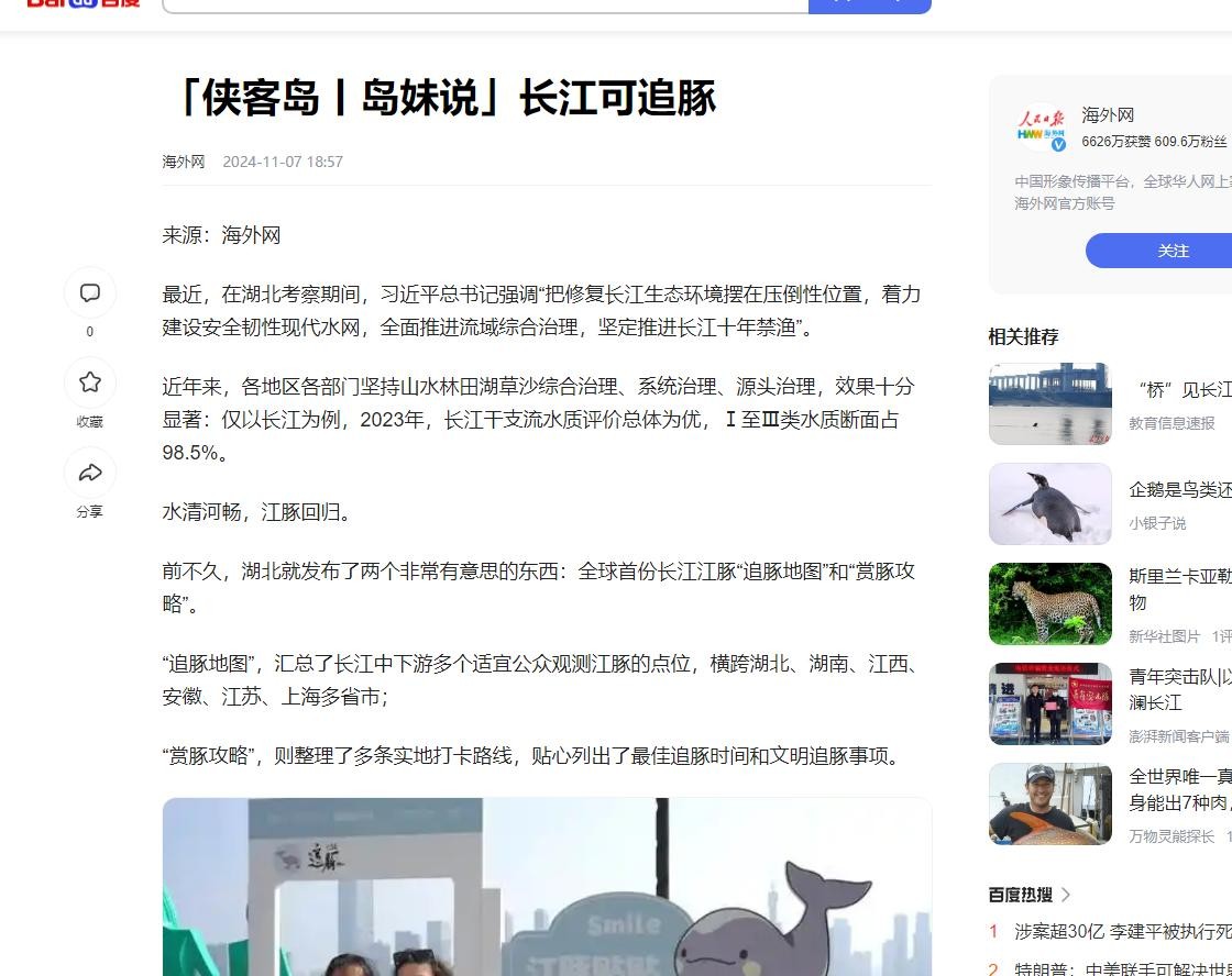 虽然,2018年民间又传出有人看到野生白鱀豚,可却最终没能得到科学证实。