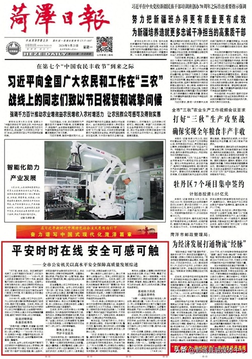 菏泽日报头版报道:平安时时在线 安全可感可触——全市公安机关以高水平安全保障高质量发展综述