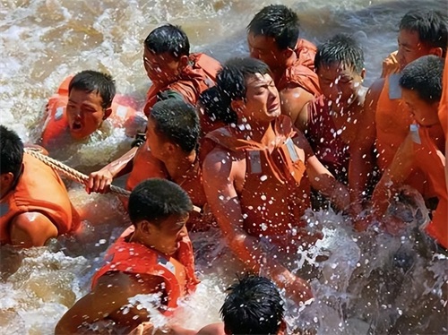 但解放军仍如离箭之弦,前赴后继地跳进汹涌的洪水之中。