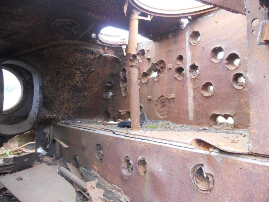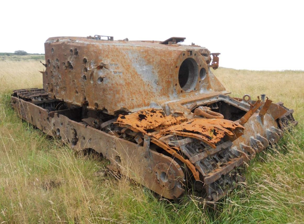 另一辆则扔在苏格兰柯尔库布里军事训练区里,它已经在岁月的风吹雨打中变成乌龟壳了。