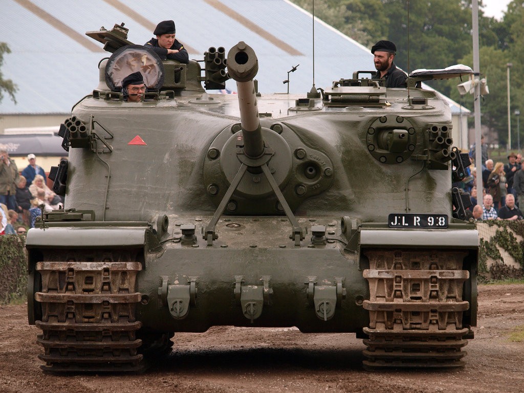后来英军将6辆交付的A39们拿到索尔兹伯里平原(就是有巨石阵的那地方)搞测试,但尴尬的是装甲兵们认为这是辆突击炮,所以不大愿意尝试这种坦克。于是他们又被交给炮兵,名义是“测试未来反坦克自行火炮的需求和标准”。