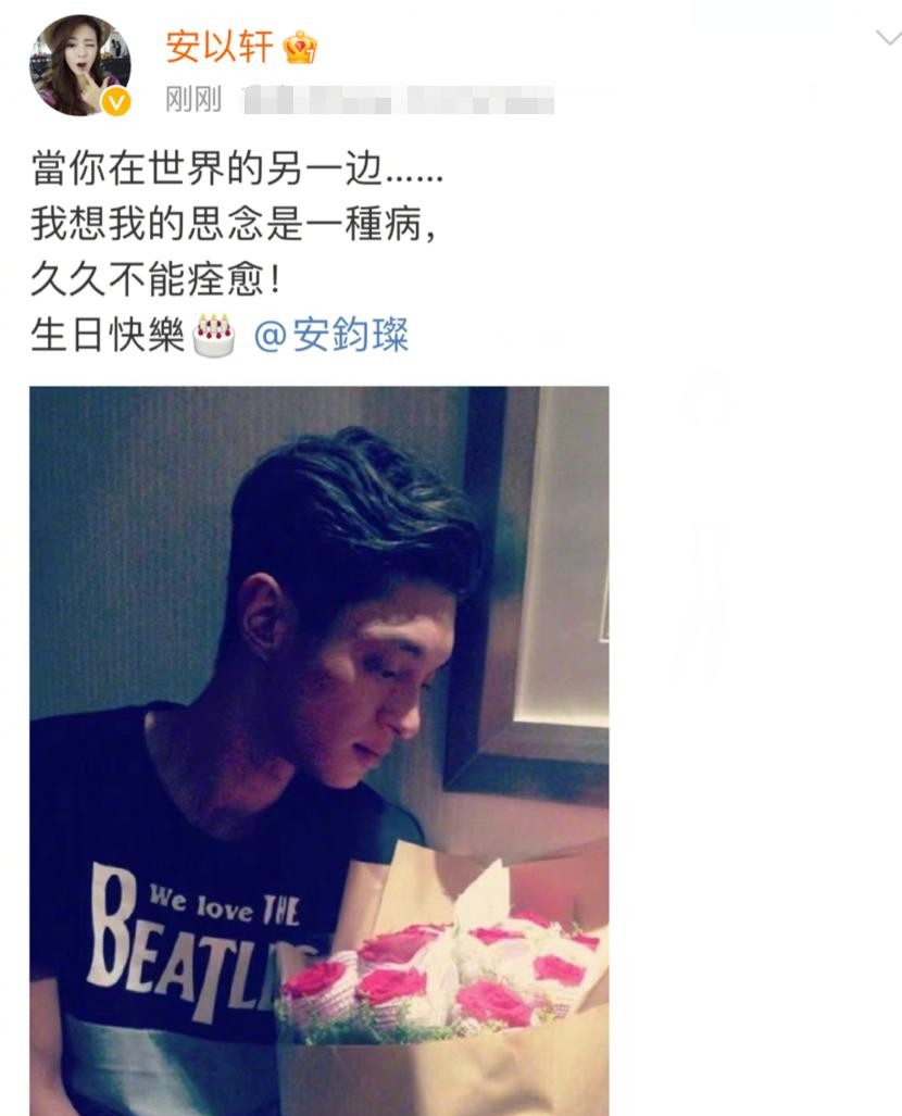 因为安钧璨在圈内的人缘很好,他离开的时候很多好友都在发博悼念,尤其是安以轩,上个月他38岁冥诞,安以轩还在发文纪念他,安钧璨去世后,每年的生日和忌日,安以轩都会发文悼念。