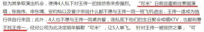 可米小子当时的队长是王传一,但成员们都在排挤和孤立他,他们去泰国工作,所有成员都不愿意和他同行,私下聚会也都不找他,其他成员之间也互相有一些矛盾。