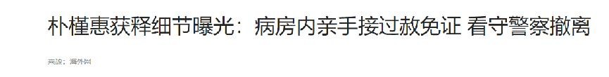 海外网:朴槿惠获释细节曝光:病房内亲手接过赦免证 看守警察撤离 2021-12-31