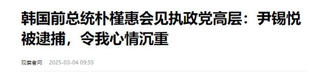 观察者网:韩国前总统朴槿惠会见执政党高层:尹锡悦被逮捕,令我心情沉重 2025-03-04