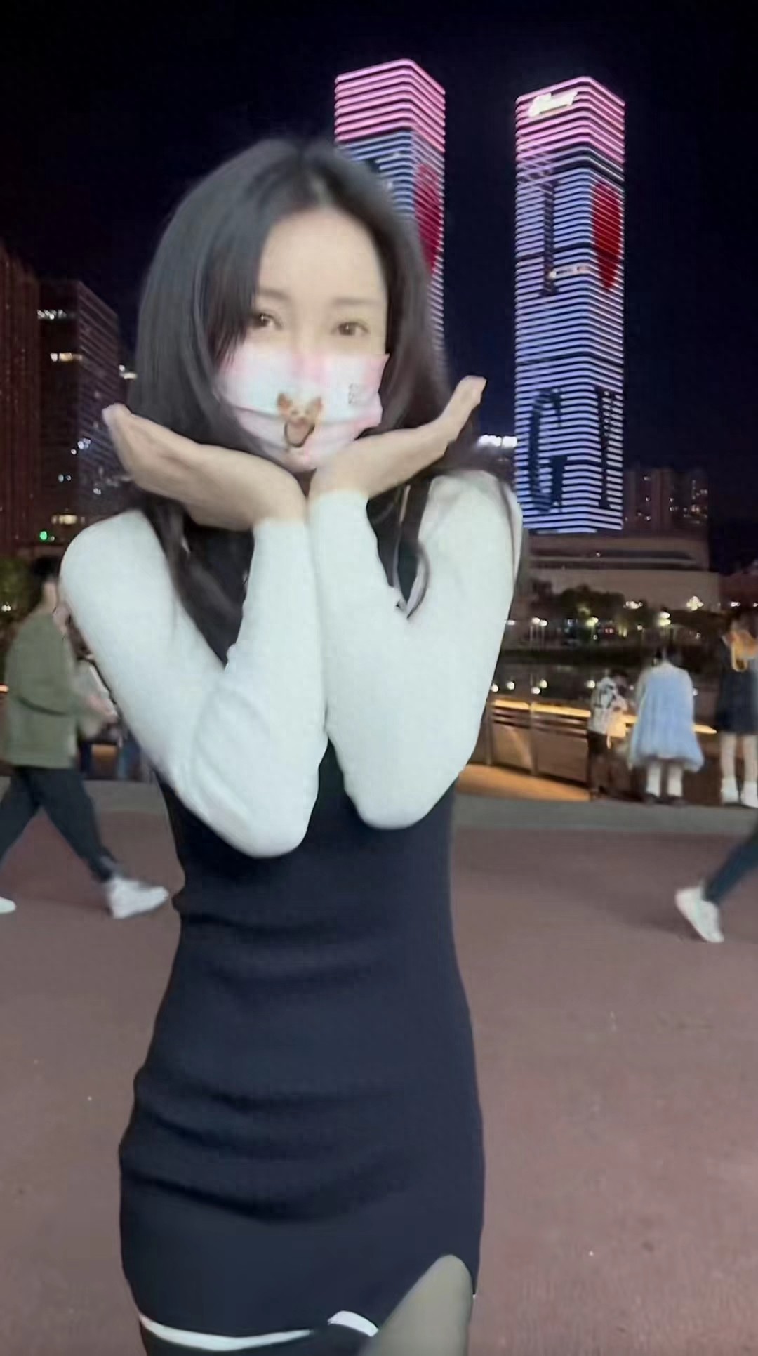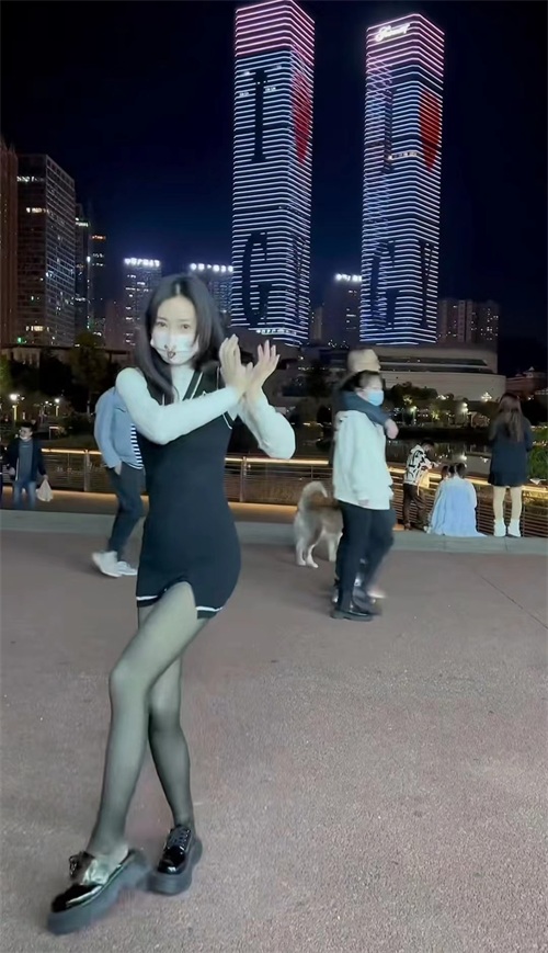 柳岩街头身着黑丝短裙跳舞无人识,双腿纤细笔直,小蛮腰盈盈一握