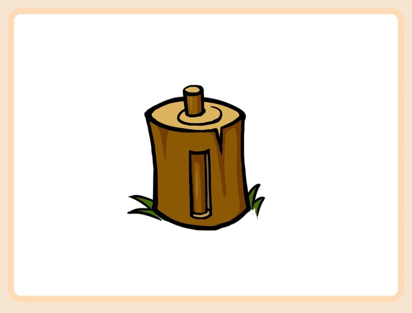 草地上放着一个木墩,木墩里插着一根木棍。这是什么意思呢?表达的又是哪个成语?